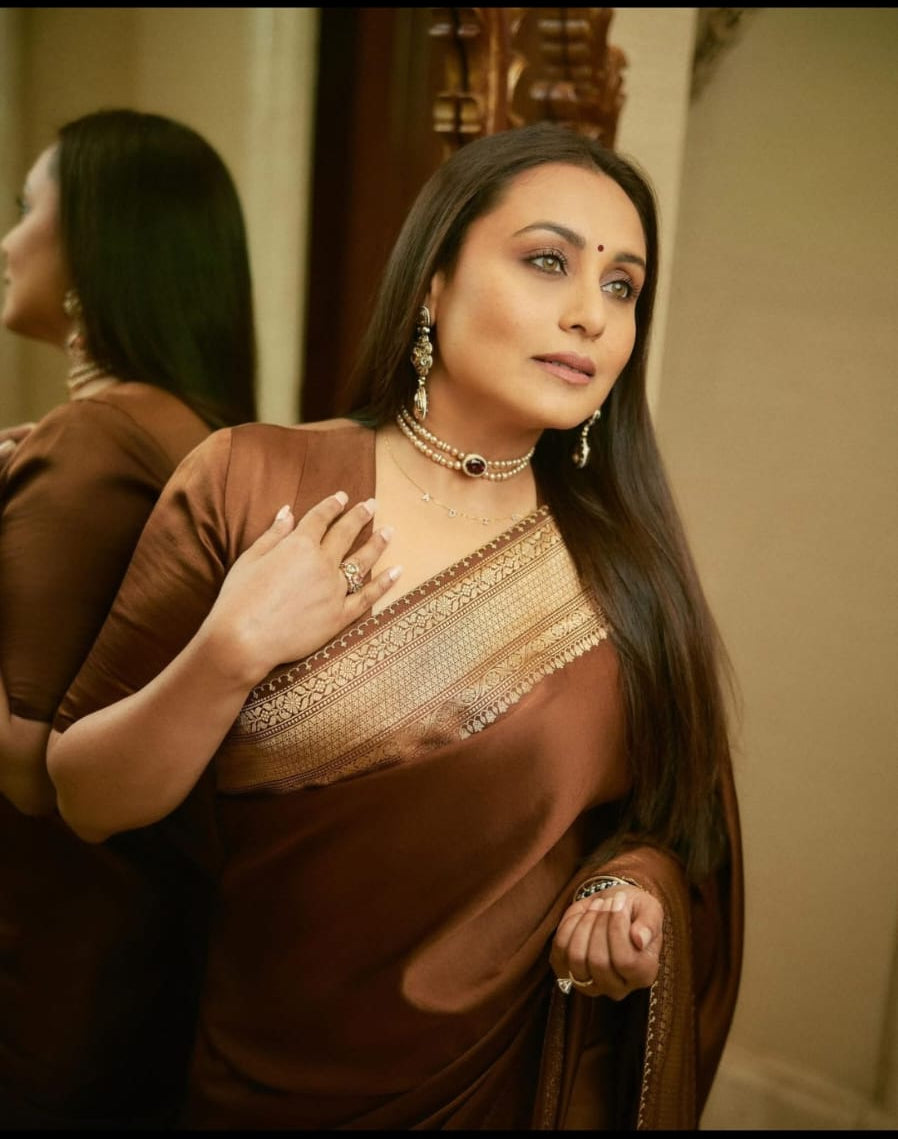 Premium mashru katan silk rani mukharji inspired coffee color saree price